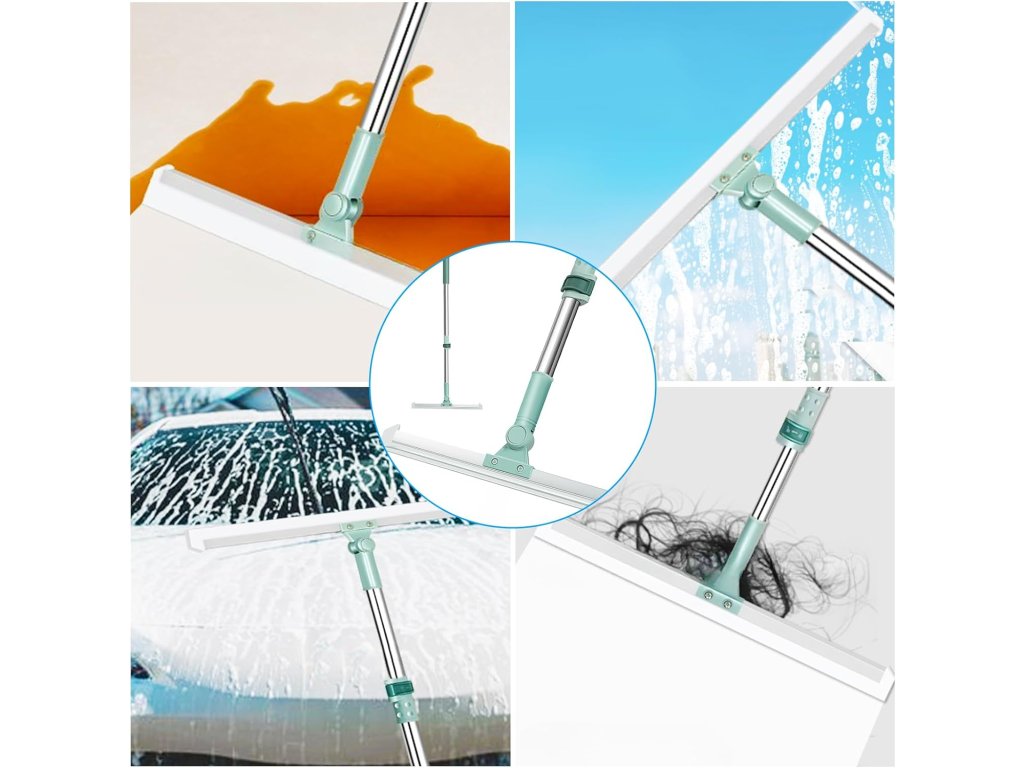 Oryginalna gumowa ściągaczka do podłóg jest wyposażona w specjalny teleskopowy uchwyt, który można łatwo regulować w zakresie od 62,5 cm do 108 cm w zależności od potrzeb. Koniec z niewygodnym schylaniem się i trudno dostępnymi narożnikami – uchwyt dopasowuje się do Twojego wzrostu i rodzaju czyszczonej powierzchni.