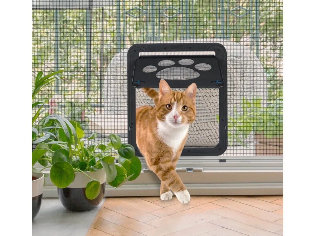 Drzwi dla zwierząt wyglądają nowocześnie i jednocześnie zabawnie. Wyjątkowy wygląd zawdzięczają wycięciom w kształcie kociej łapki . Wycięcia są wyposażone w moskitiery , dzięki czemu są przezroczyste i jednocześnie chronią wnętrze przed owadami.