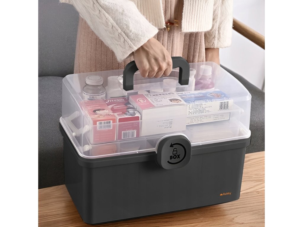 Ten wyjątkowy organizer na leki oferuje wystarczająco dużo miejsca, aby pomieścić wszystkie niezbędne rzeczy – od tabletek i maści po bandaże i krople. Pojemność wewnętrzna została zaprojektowana tak, aby pomieścić większe pojemniki lub artykuły medyczne, które normalnie nie mieszczą się w mniejszych organizerach.