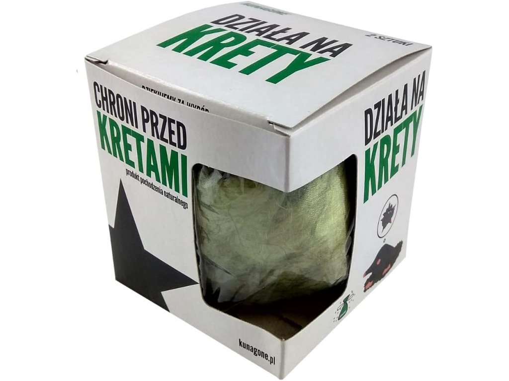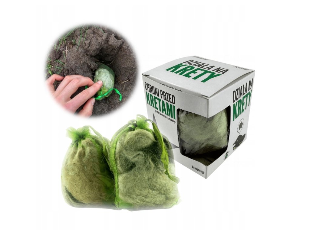 Naturalny odstraszacz kretów nie zawiera żadnych toksycznych substancji. Nie uwalnia niczego do gleby, tylko zapach, który odstrasza krety. Ponieważ nie zagraża roślinom ani zwierzętom, nadaje się do ogrodu z uprawami lub kwiatami, ale także do podwórka z trawnikiem.
