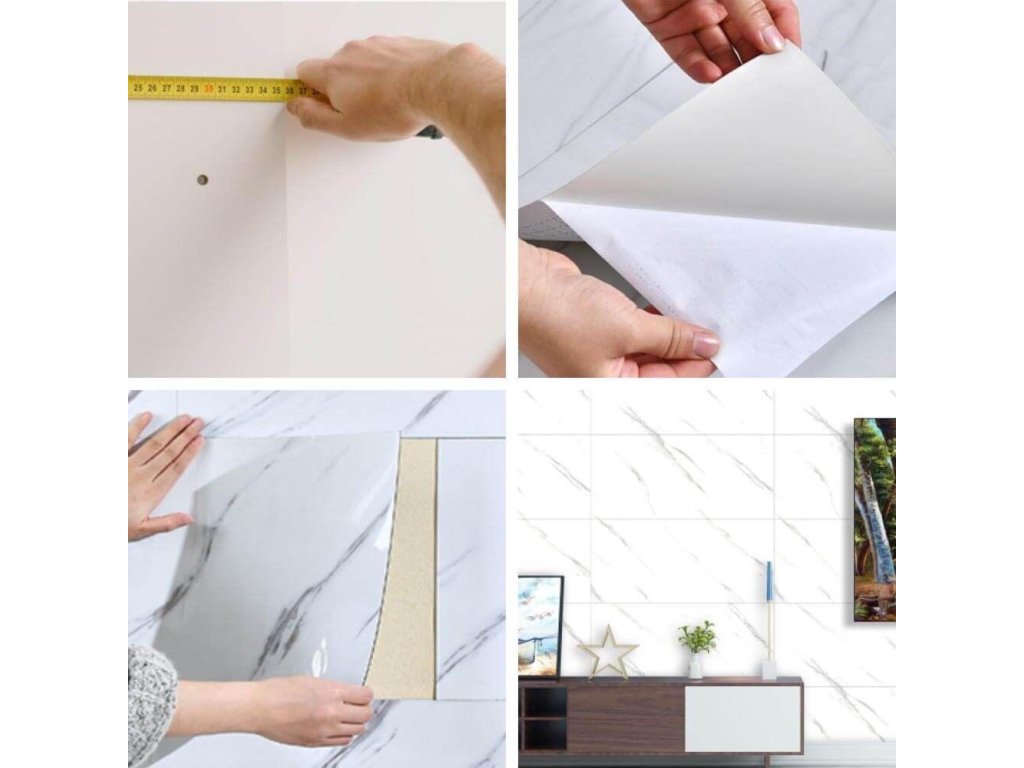 Zapomnij o klejach, pędzlach i skomplikowanym przygotowaniu. Samoprzylepne płytki ścienne imitujące marmur nakłada się szybko i łatwo dzięki warstwie kleju. Możesz to zrobić bez pomocy fachowca i bez użycia specjalistycznych narzędzi.