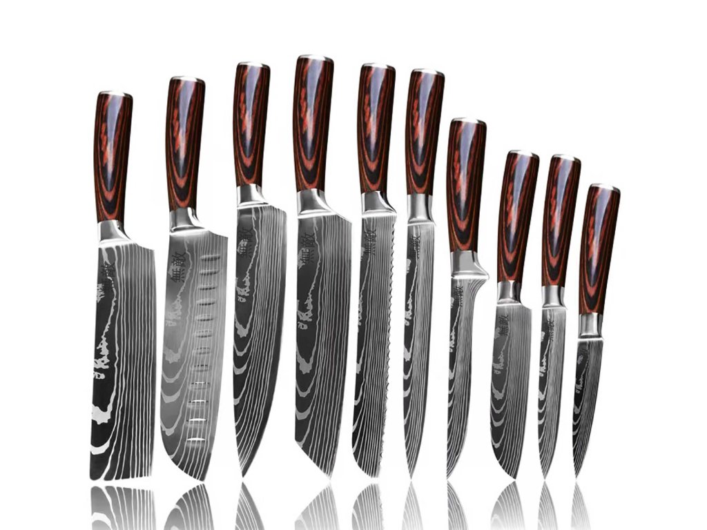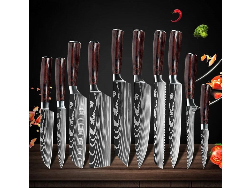 Ten kompletny zestaw zawiera 10 różnych rodzajów noży, które zaspokoją wszystkie potrzeby kuchenne.