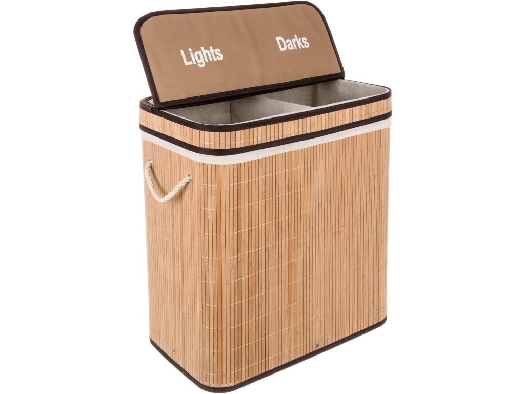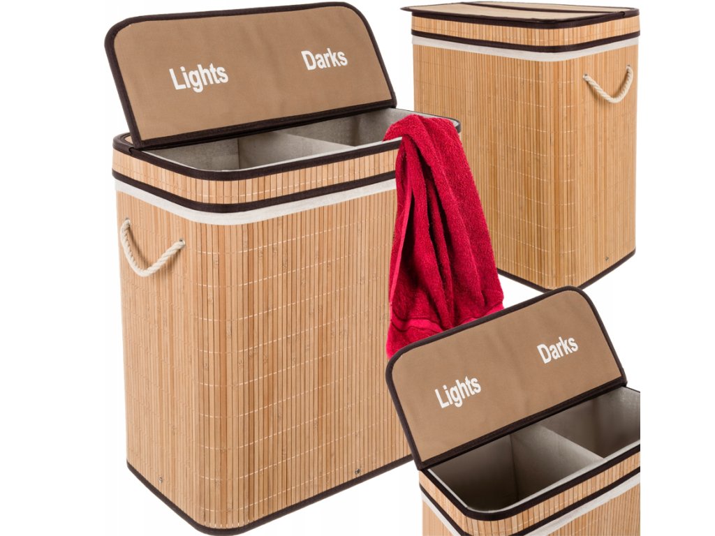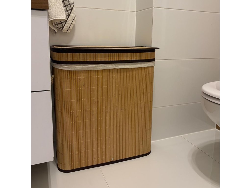 Elegancki podwójny kosz na pranie - bambusowy kosz na pranie