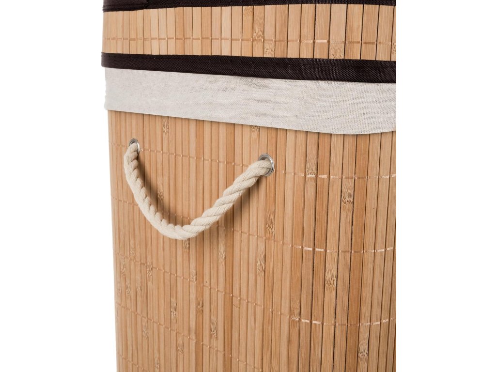 Wyjątkowy bambusowy kosz na pranie wyróżnia się wyrafinowanymi detalami, które doceni każdy użytkownik: