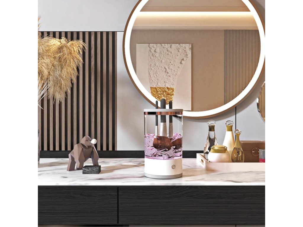 Elektryczny czyścik do pędzli do makijażu ożywi każde wnętrze dzięki stylowemu i nowoczesnemu designowi. Dodatkowo ma kompaktowe wymiary, dzięki czemu nie zajmuje dużo miejsca. Może towarzyszyć Ci nawet w podróży.
