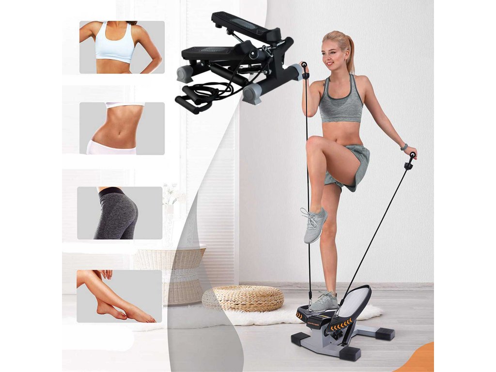 Ten praktyczny Stepper Twist Swing posiada wyświetlacz LCD, który pokazuje wyniki 4 funkcji monitorowania bezpośrednio podczas ćwiczeń: podaje liczbę powtórzeń, czas ćwiczeń, spalone kalorie oraz średnią liczbę powtórzeń na minutę, co pozwala zachować właściwe tempo.