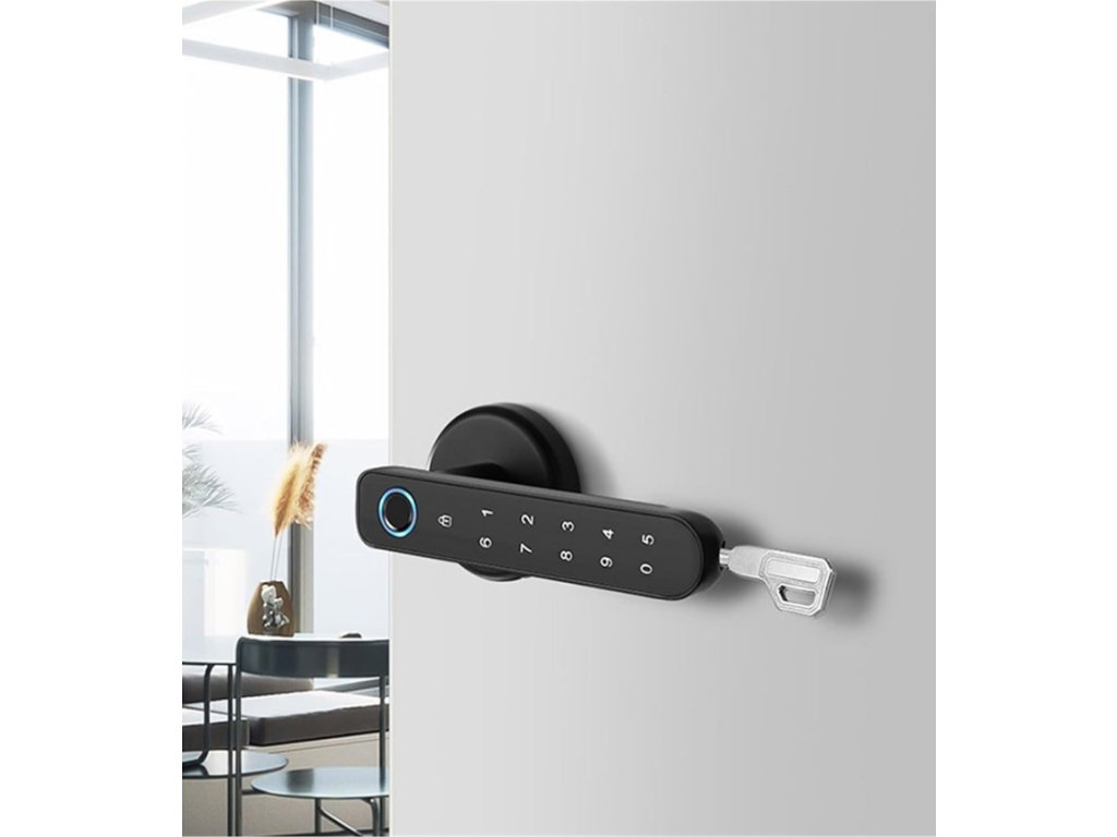 Zamek przechowuje do 30 odcisków palców i 50 różnych haseł, dzięki czemu idealnie nadaje się do większych domów, biur i przestrzeni współdzielonych. Wszystko można skonfigurować szybko i intuicyjnie za pomocą aplikacji mobilnej.