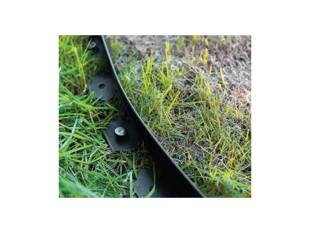 Nie są wymagane żadne specjalne narzędzia ani umiejętności. Plastikowe obrzeże trawnika jest bardzo łatwe w montażu. Wszystko, czego potrzebujesz, to młotek do wbijania plastikowych kołków w ziemię. Zapewnią one stabilność obrzeża, ale w razie potrzeby możesz je w każdej chwili przesunąć.