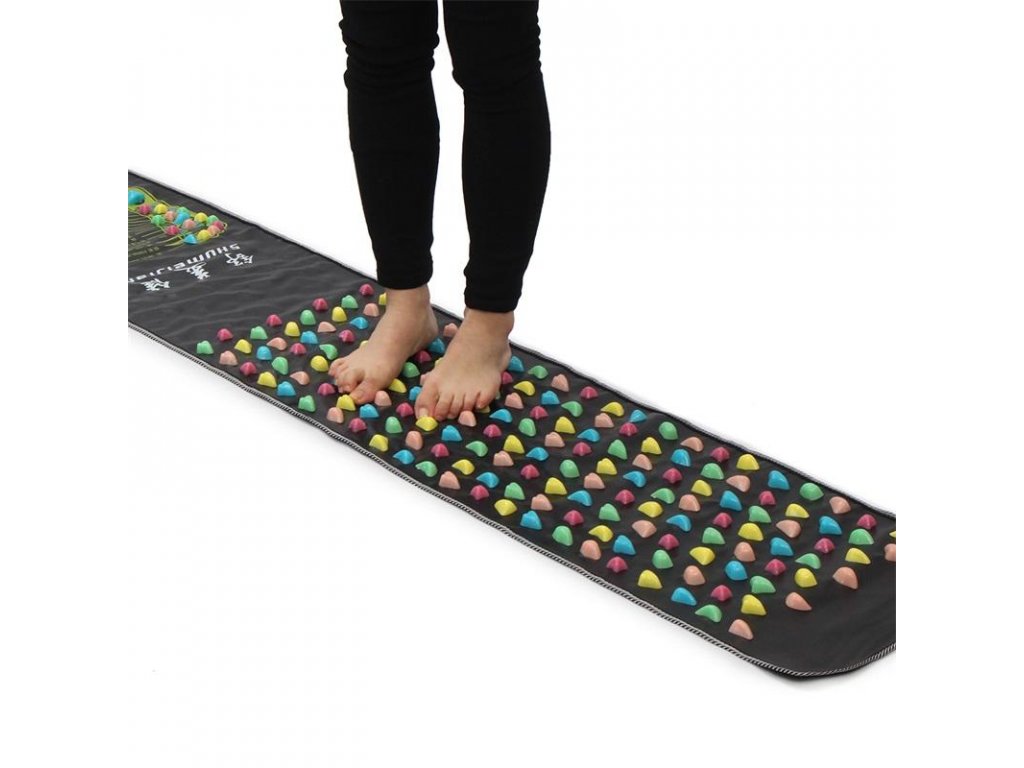 Punkty akupunkturowe na nogach mogą stymulować całe ciało i po czasie poprawiać jego funkcjonowanie. Specjalna mata z kamieniami skupia się na tych punktach, które masuje, aktywuje, poprawia krążenie, wspierając tym samym proces naturalnej regeneracji całego ciała.