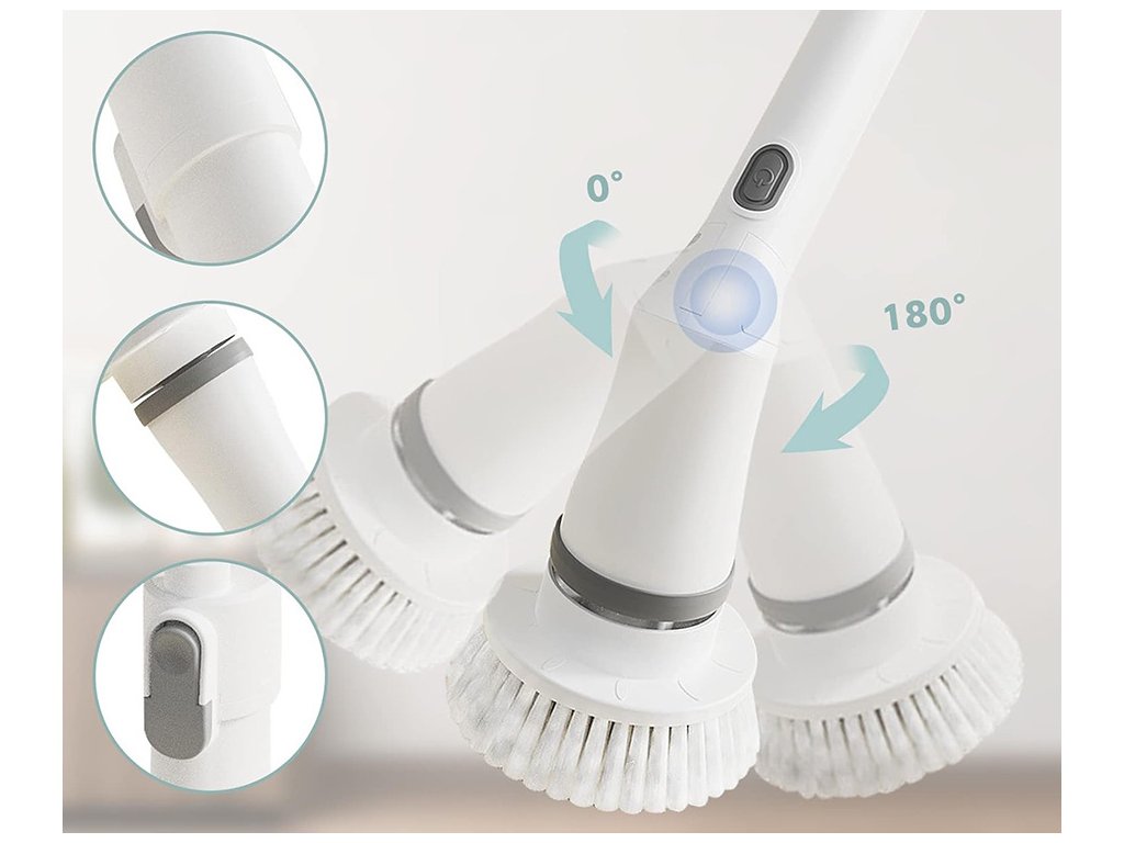 Elektryczna szczotka obrotowa jest gotowa do walki z brudem, niezależnie od tego, jak bardzo jest on uporczywy. Do dyspozycji jest aż 6 głowic , z których możesz wybrać tę, której potrzebujesz w danej chwili. Co więcej, wymiana nasadek jest łatwa i szybka, co może ułatwić cały proces sprzątania.