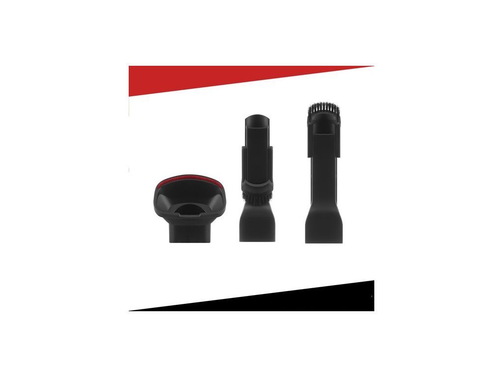 Szeroka gama akcesoriów pozwala na szeroki zakres zastosowań odkurzacza ręcznego. Ssawka szczelinowa ze szczotką oraz ssawka z warstwą włókien i sierści – pozwalają skutecznie dotrzeć do wąskich przestrzeni, dokładnie wyczyścić tapicerkę i łatwo zebrać włosy i sierść zwierząt. W zestawie znajduje się baza ładująca – umożliwia wygodne przechowywanie i jednoczesne ładowanie odkurzacza samochodowego, dzięki czemu urządzenie jest zawsze gotowe do użycia.