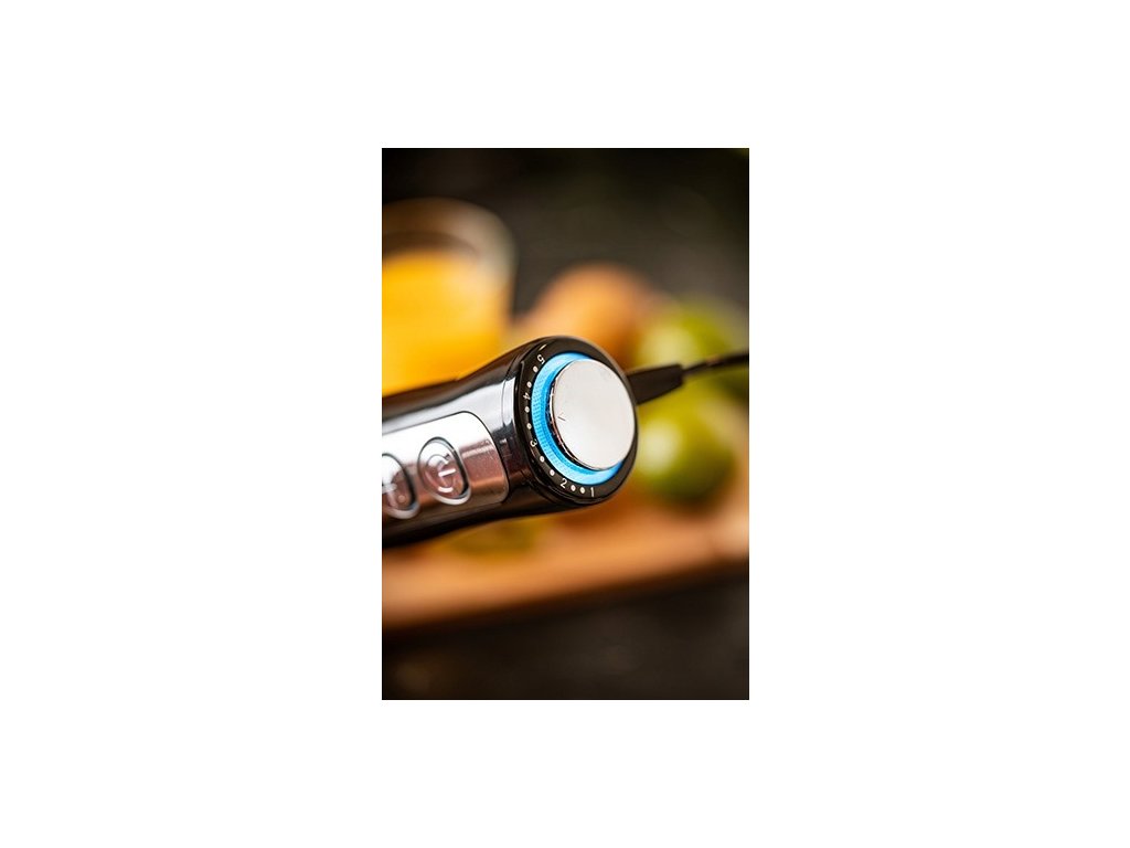 Dzięki mocy do 1500 W ten wysokiej jakości blender ręczny pozwoli Ci bez wysiłku osiągnąć idealne rezultaty. Prędkość obrotowa zapewnia wydajne przetwarzanie składników, a silnik o zredukowanych wibracjach zapewnia komfort użytkowania.