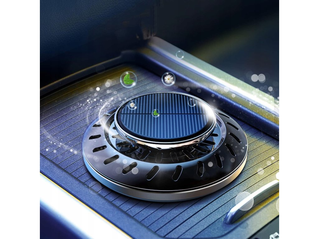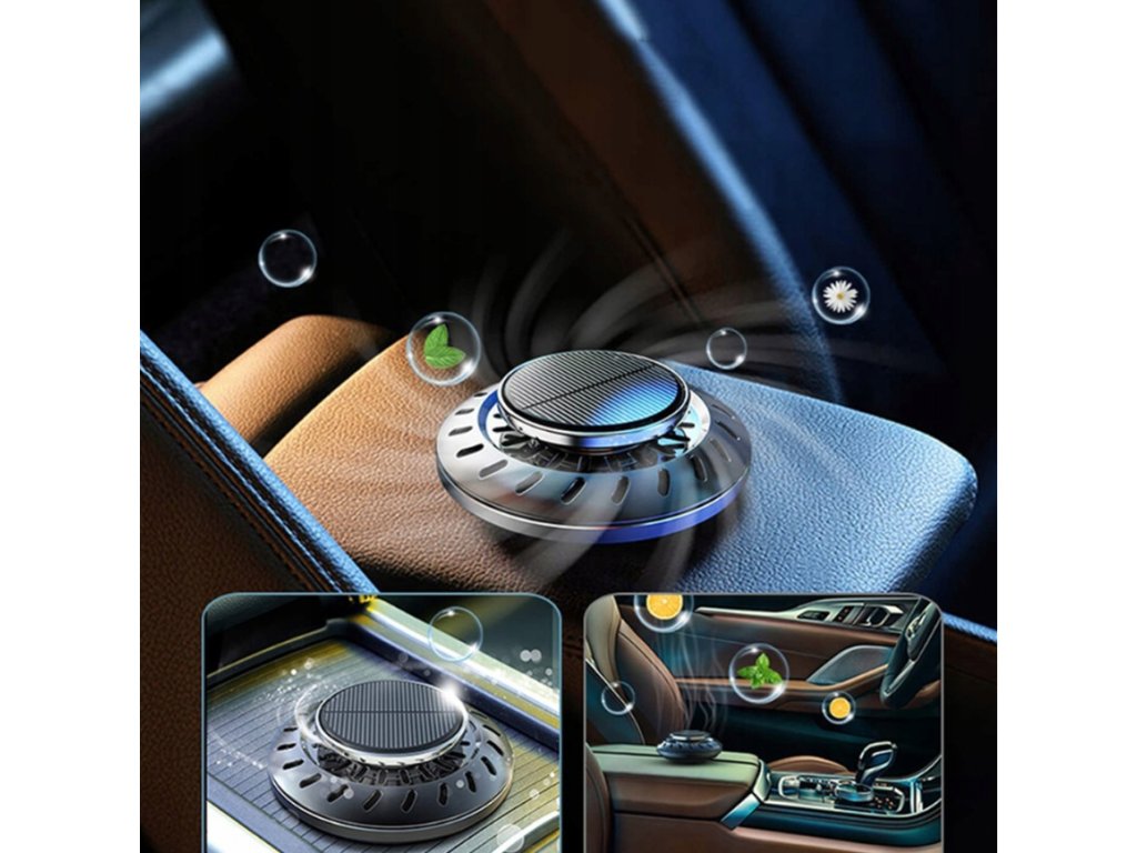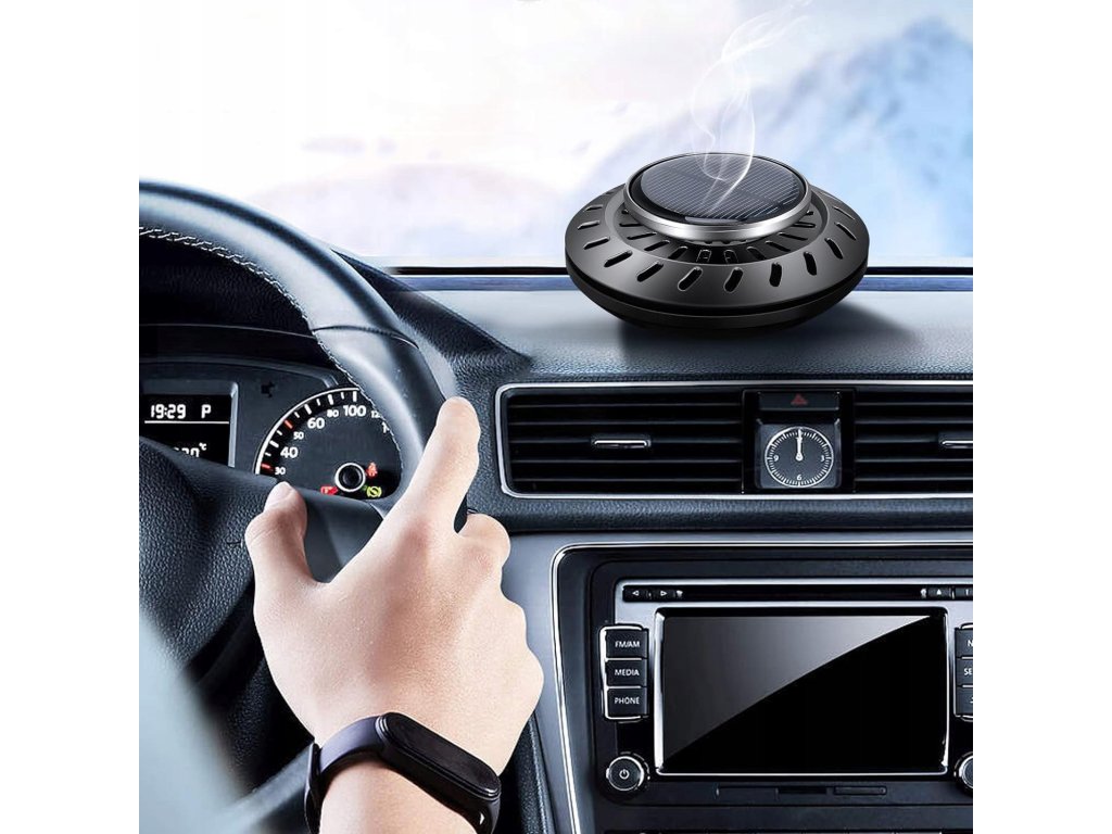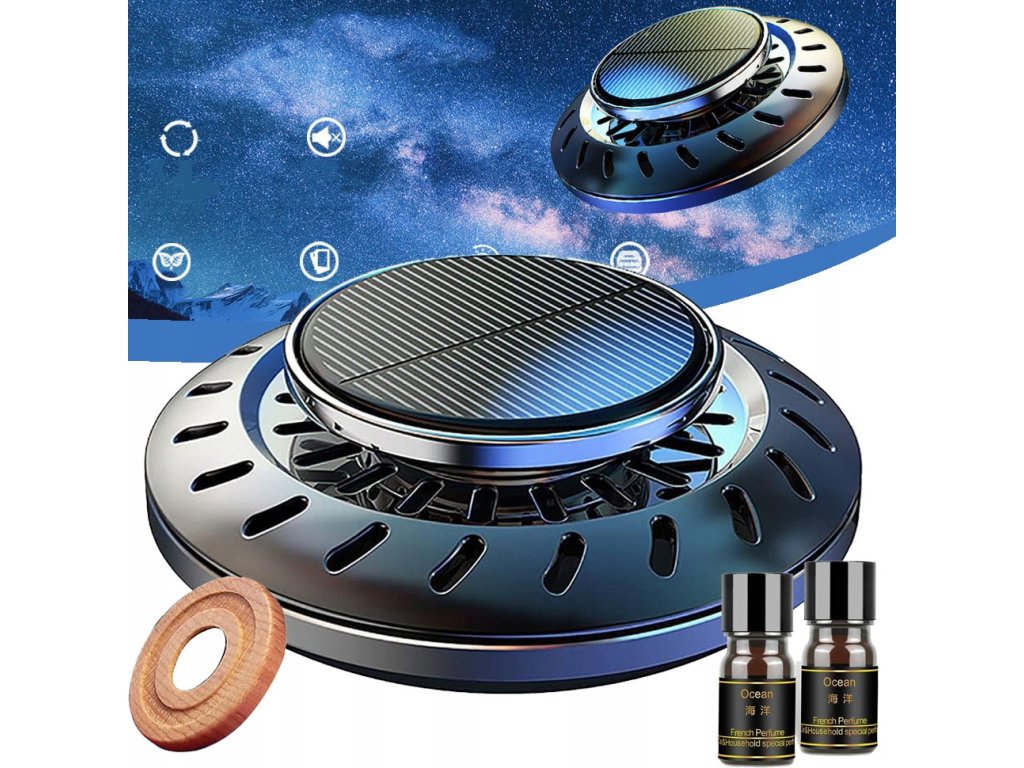 Odświeżacz powietrza do samochodu zasilany energią słoneczną, zawierający olejki eteryczne