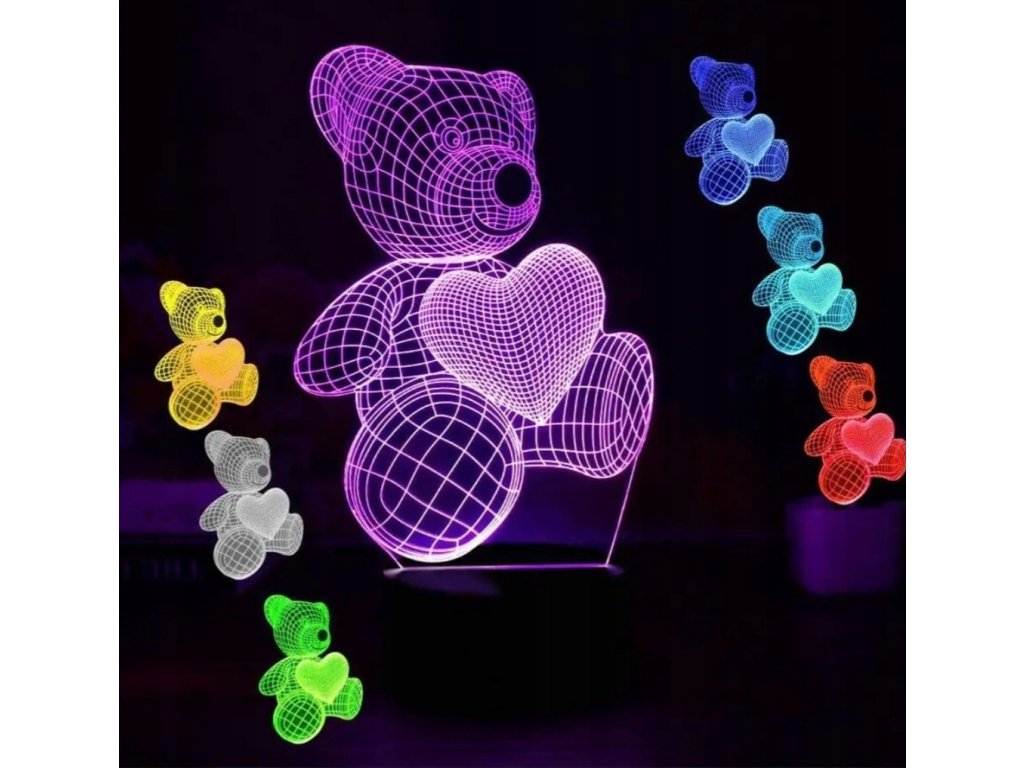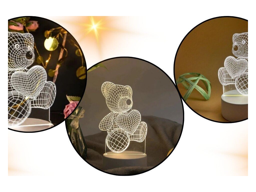 Oszałamiająca dziecięca lampka nocna LED z misiem - 3D