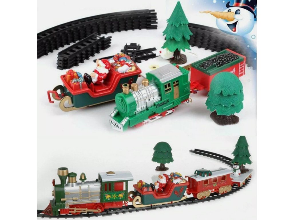 - Opakowanie: 1 x lokomotywa, 1 x wagon z węglem, 1 x sanie ze Świętym Mikołajem, 1 x dekoracja w kształcie bałwana, 2 x drzewa, 1 x szyny poprzeczne, 4 x szyny proste, 10 x szyny zakrzywione