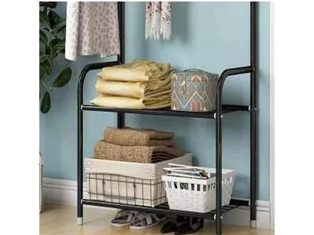 Jedną z największych zalet tego praktycznego, wielofunkcyjnego wieszaka są dwie stałe półki u dołu. Pozwalają one na wygodne przechowywanie butów, toreb, plecaków lub innych akcesoriów codziennego użytku.