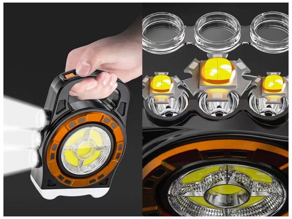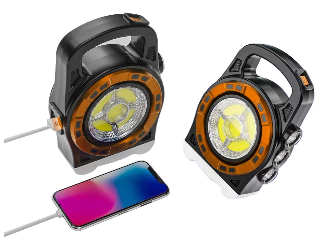 Wbudowana bateria akumulatorowa nie tylko zasila energooszczędne diody COB LED, ale także ładuje urządzenia przez USB. Latarka solarna pełni również funkcję power banku. Dzięki temu idealnie nadaje się do podróży lub do użytku w przypadku awarii zasilania w domu.