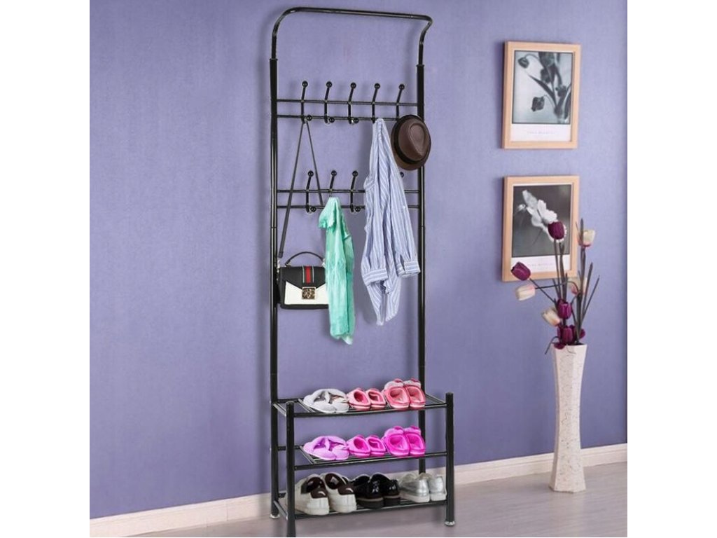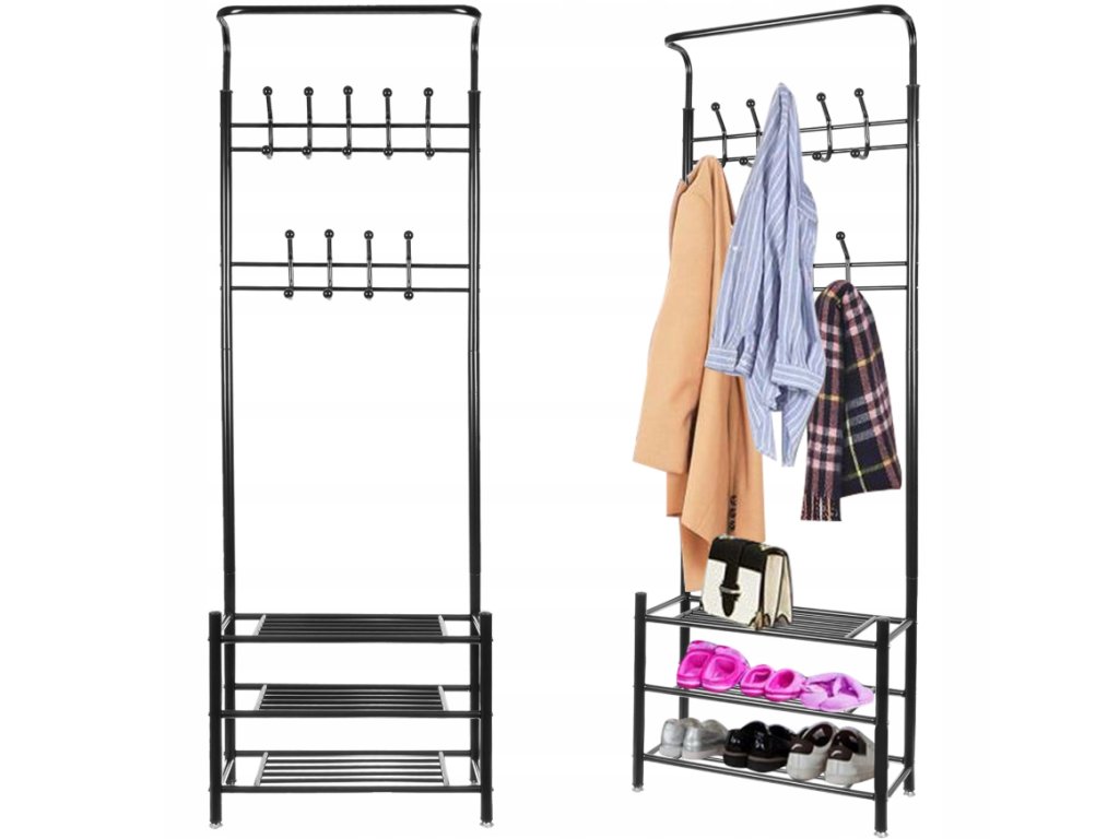 Specjalny wieszak na ubrania i buty jest nie tylko praktyczny, ale również atrakcyjny wizualnie . Jego nowoczesny, minimalistyczny wygląd pasuje do różnych stylów wnętrz – od klasycznych po nowoczesne i industrialne. Metal prezentuje się elegancko i uniwersalnie, dzięki czemu można go łatwo łączyć z innymi meblami.