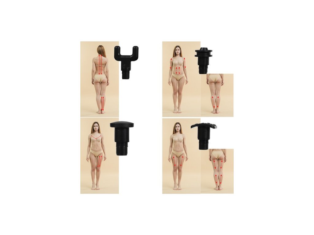 Pistolet do masażu wykonany jest z najwyższej jakości materiałów. Zawiera 10 głowice masujące do różnych rodzajów masażu z regulacją intensywności.