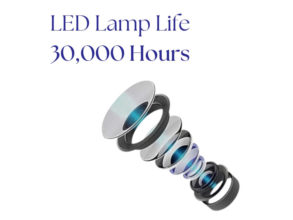 Wysoka jakość obrazu - rozdzielczość optyczna 320 x 240 pikseli (obsługuje rozdzielczości do 1920 x 1080 pikseli) gwarantuje doskonałe wrażenia podczas korzystania z tego mini projektora. Niesamowita żywotność lampy LED wynosi 30 000 godzin.