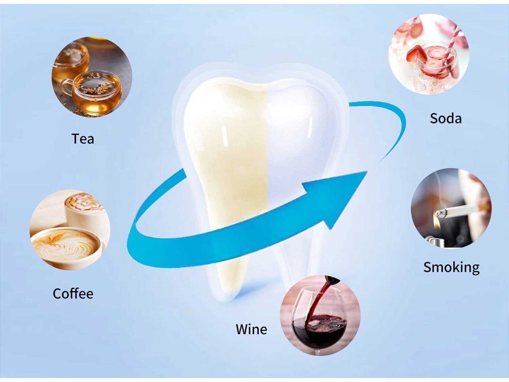 Pisak do wybielania zębów może skutecznie usuwać plamy z papierosów, herbaty, wina, kawy i innych. Specjalny żel szybko usuwa powierzchniowe przebarwienia i wnika głęboko usuwając przebarwienia zębów. Taki efekt jest głęboki i trwały.