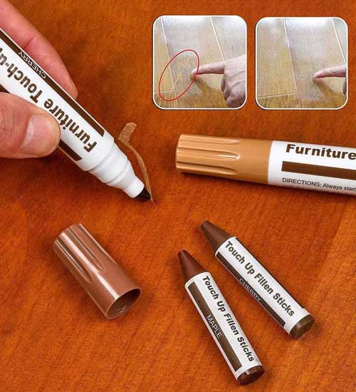 Wysoce skuteczne i wysokiej jakości pisaki naprawcze i kredki woskowe są bezpieczne i nie zawierają żadnych toksycznych ani szkodliwych substancji. Szybko wysychają, mają mocną przyczepność i są bardziej odporne na wielokrotne przetarcia i czyszczenie. Twoje meble nabiorą nowego „blasku” w ciągu kilku minut.