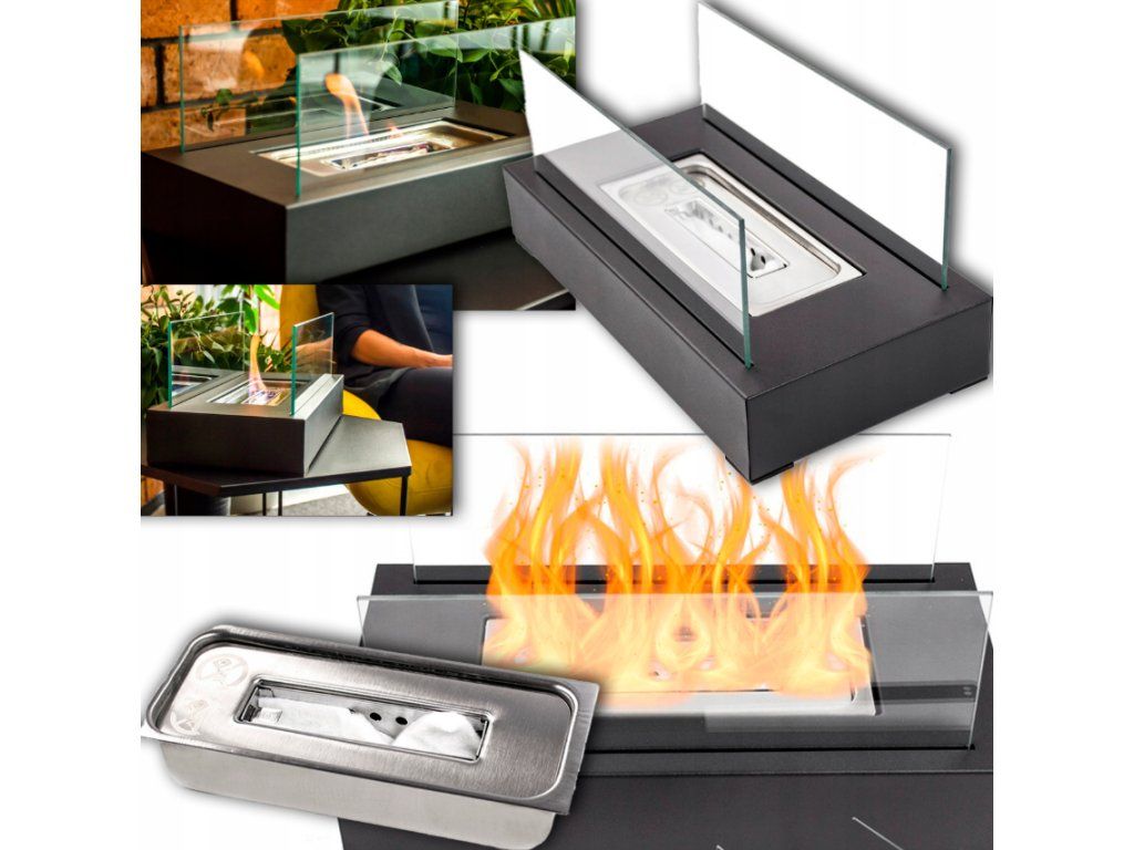 Biokominek na stół charakteryzuje się czystymi liniami, eleganckim metalowym wykończeniem i subtelnym szkłem, dzięki czemu wygląda nowocześnie, a jednocześnie przytulnie. Ponadto, dzięki kompaktowej konstrukcji, idealnie nadaje się do salonu, biura, sypialni lub na taras.