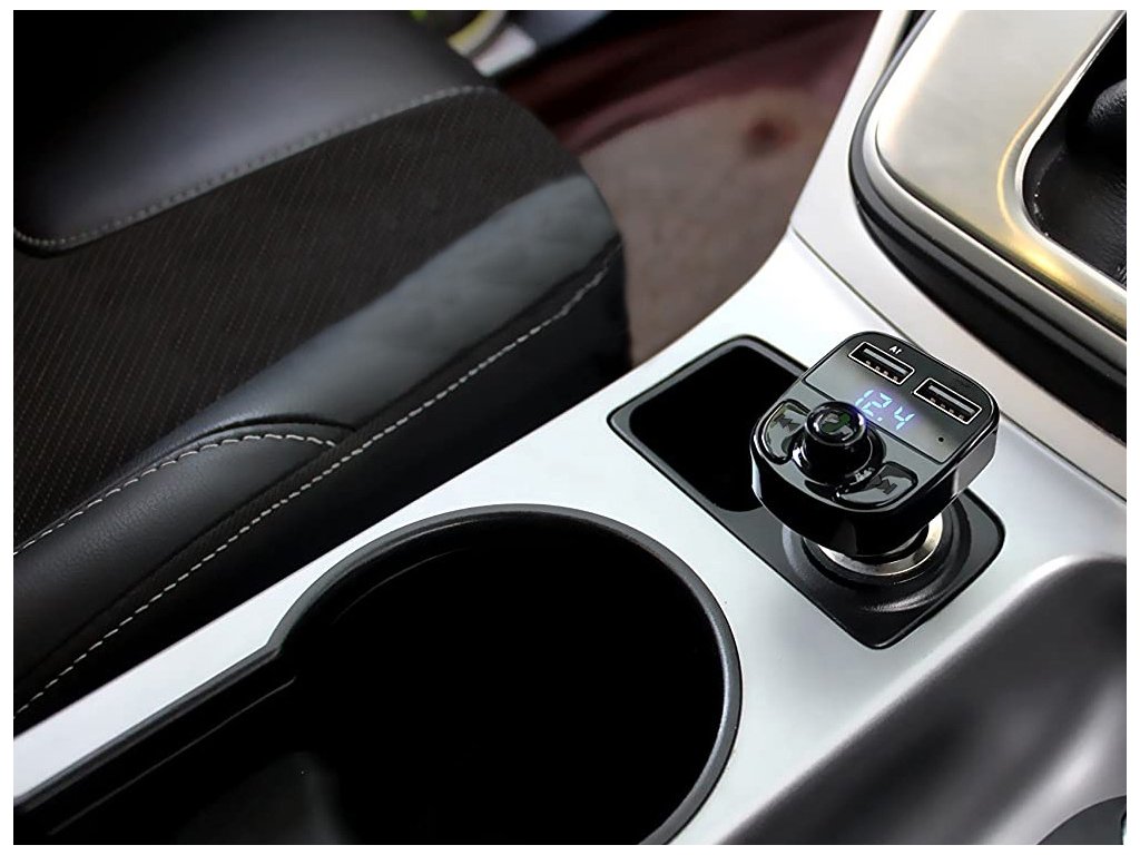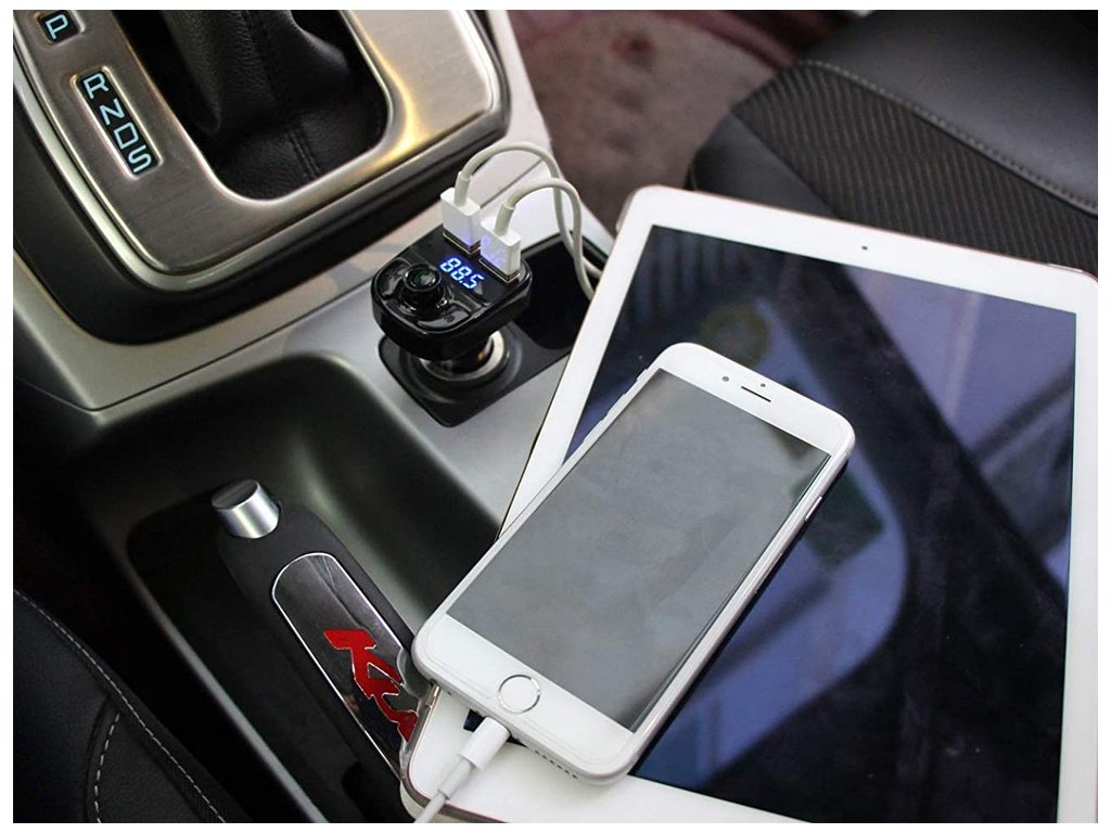 Nadajnik posiada dwa porty USB do zasilania i ładowania różnych urządzeń za pomocą kabla USB. Ładowanie telefonu jest szybkie. Możesz także podłączyć tablet lub inne urządzenia zasilane przez USB. Wejście 12 V / 24 V, 1 port z odczytem i ładowaniem USB; smart 3. 1. Ciesz się szybkim ładowaniem dla kierowcy i pasażera w tym samym czasie.