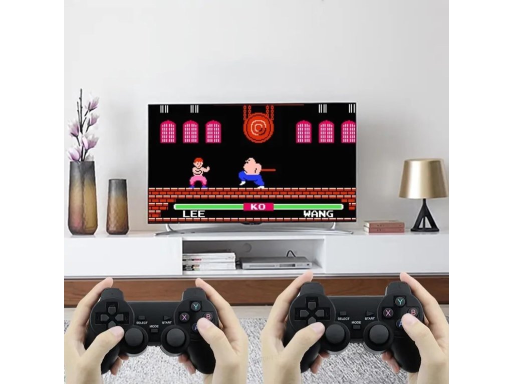 Konsola do gier retro TV jest również wyposażona w dwa kontrolery, dzięki czemu możesz grać we dwie osoby. Kontrolery są bezprzewodowe i ergonomicznie zaprojektowane, dzięki czemu możesz cieszyć się nie tylko dobrą zabawą, ale także komfortem, nie ograniczając ruchów.