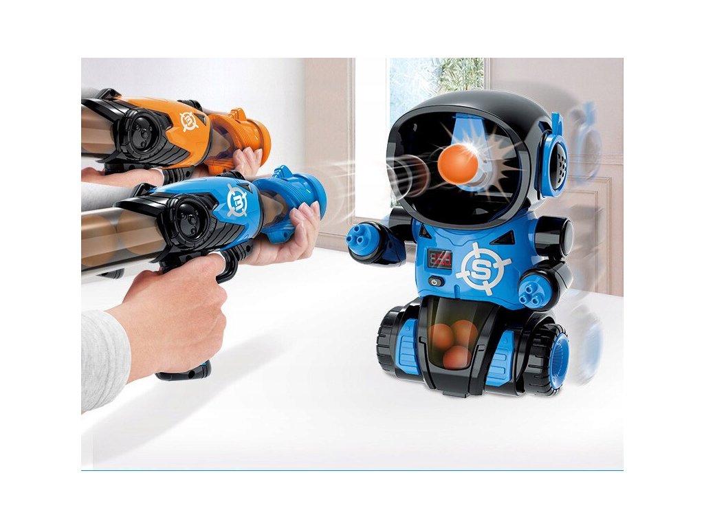 Głównym zadaniem tej atrakcyjnej gry jest trafienie robota bezpośrednio w cel, co dodaje punkty na jego wyświetlaczu LCD. Wyświetlacz śledzi wynik przez całą grę, zachęcając do rywalizacji i dążenia do poprawy. Dzięki temu gracze monitorują swoje postępy i starają się pobić własne rekordy.