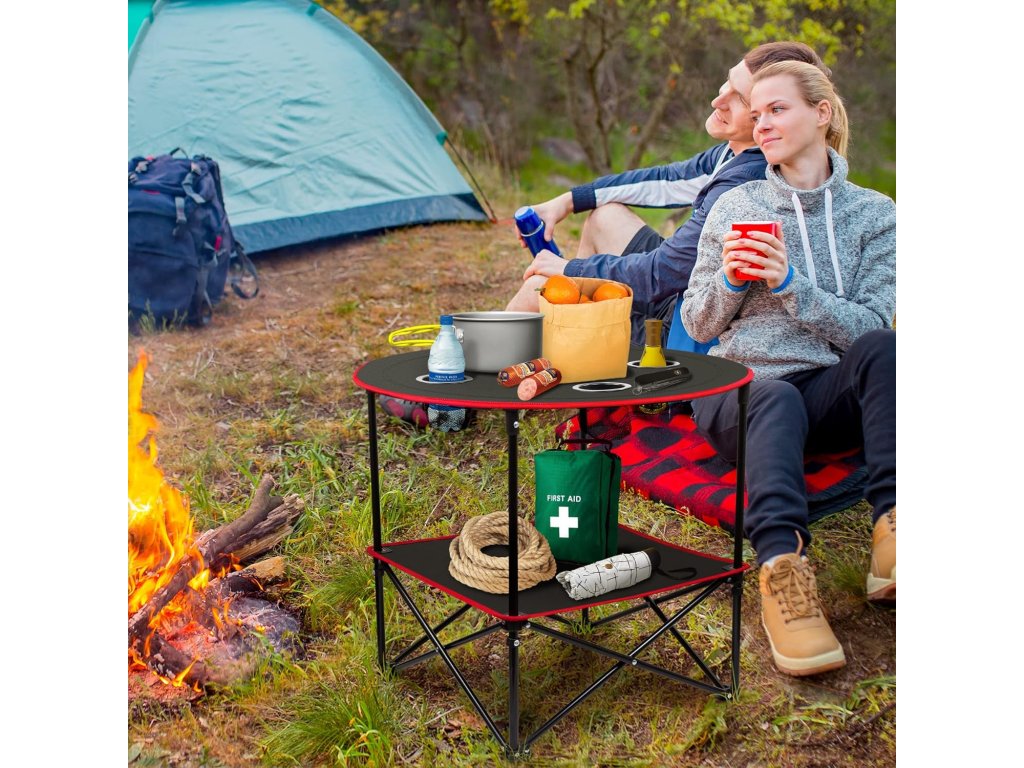 Odkryj wyjątkowy składany stół kempingowy, który zaskoczy Cię swoim wyposażeniem. Praktyczne funkcje obejmują specjalne wgłębienia, które zapewnią bezpieczeństwo Twoim napojom. Docenisz również dolną przestrzeń do przechowywania, dzięki której będziesz mieć wszystko, czego potrzebujesz, pod ręką.