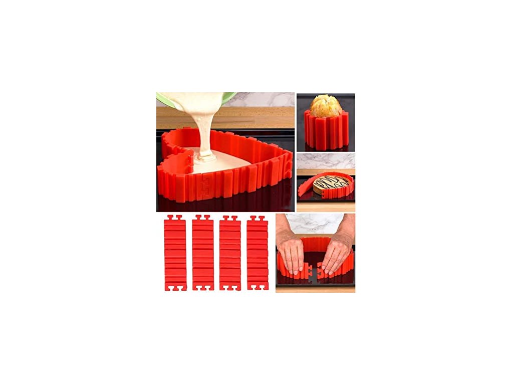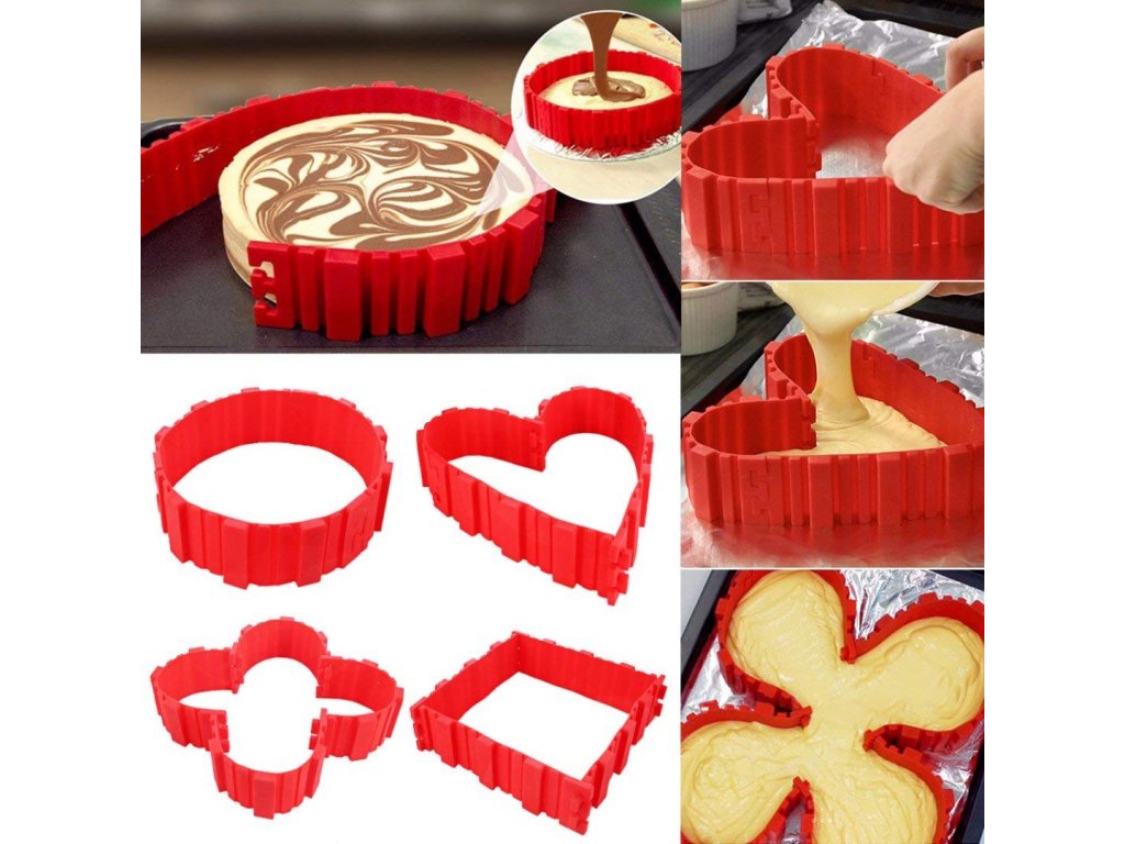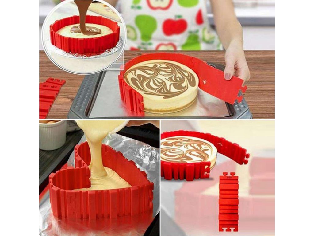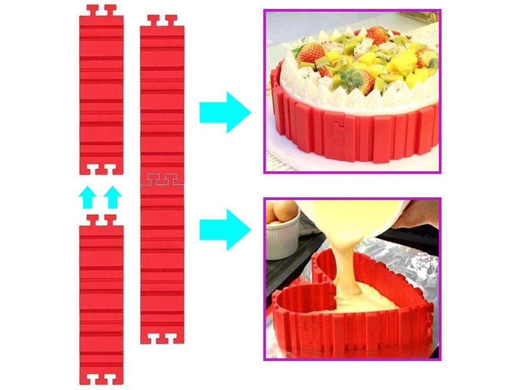 Nasza forma składa się z silikonowych pasków, które są niezwykle elastyczne i idealnie się zazębiają. Rama utworzy formę do pieczenia o dowolnym kształcie. Części łatwo się przyczepiają i doskonale trzymają podczas pieczenia, dzięki czemu nie musisz się martwić, że forma rozpadnie się w piekarniku. To rewelacyjny produkt, który spodoba się każdemu domowemu cukiernikowi.
