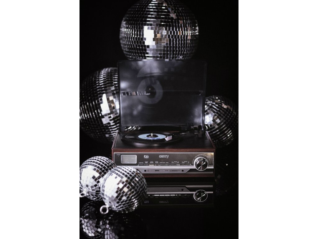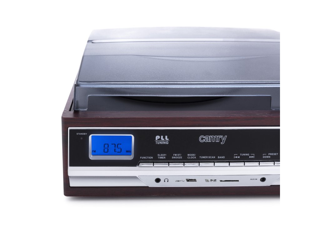Pomimo wyglądu retro, gramofon oferuje zaawansowane możliwości technologiczne. Odbiornik Bluetooth umożliwia bezprzewodowe odtwarzanie muzyki bezpośrednio ze smartfona lub tabletu. W urządzeniu znajduje się radio PLL FM, które pozwoli Ci słuchać ulubionych stacji, a także funkcja zegara i timera, które uprzyjemnią Ci chwile słuchania muzyki.