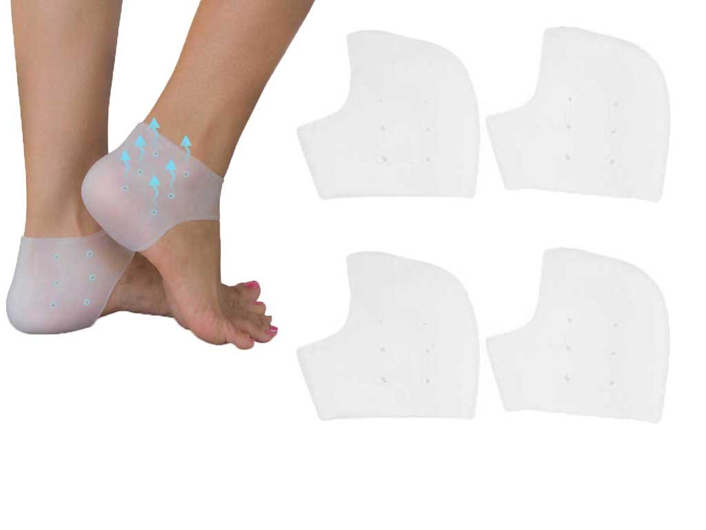 Możesz również użyć tego wyjątkowego ochraniacza na suche i popękane pięty. Wystarczy nałożyć krem na stopy i założyć żelowy ochraniacz, na ochraniacz można również założyć skarpetki. Nawilżające wkładki żelowe chronią pięty przed odciskami, pęcherzami i pęknięciami. Przyspieszają gojenie popękanej oraz suchej skóry pięt i jednocześnie regenerują skórę.