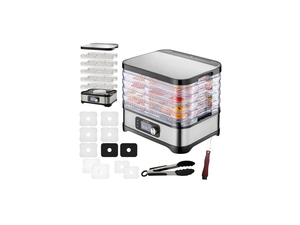Ta niesamowita suszarka do owoców i grzybów posiada wbudowany timer, który pozwala zaprogramować jej czas pracy od 1 do 72 godzin za pomocą przycisków na wyświetlaczu LCD.