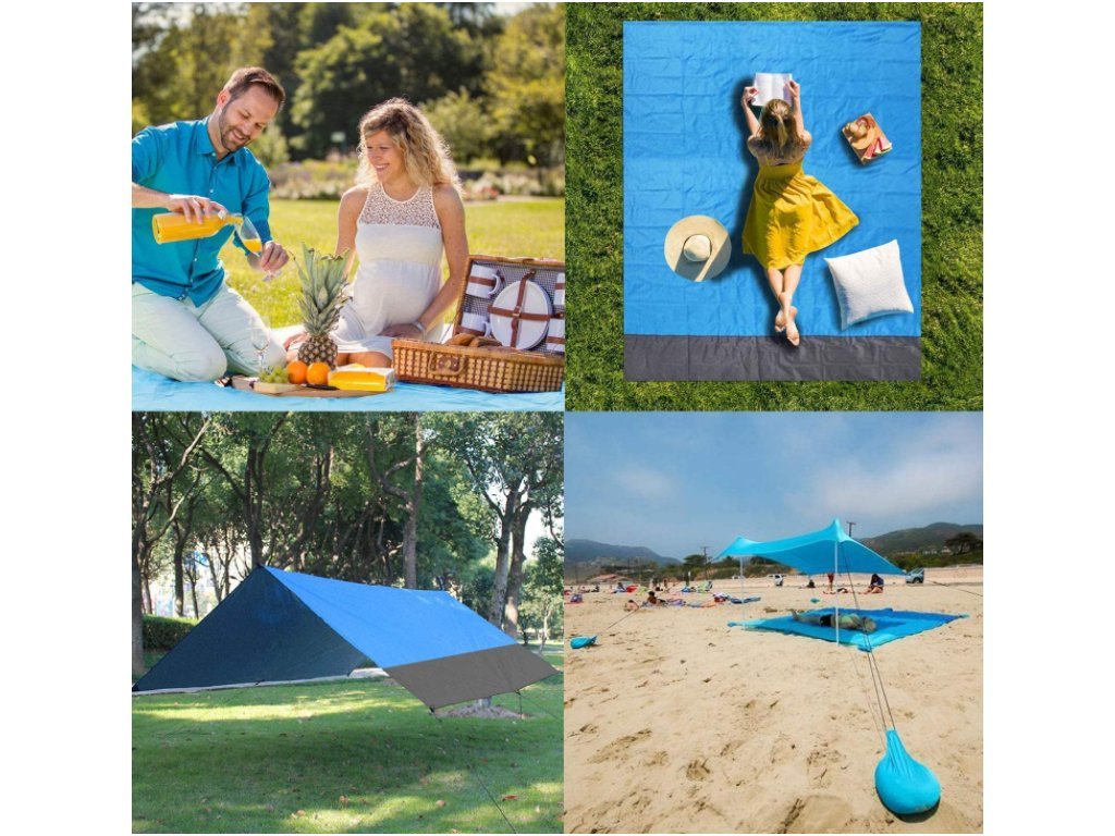 Te wyjątkową matę na plażę możesz również wykorzystać jako zacienienie - jako ochronę przed słońcem. Wystarczy przypiąć końce plandeki na wysokości, na przykład na gałęziach drzew, a nawet latem uzyskasz nieoceniony cień.