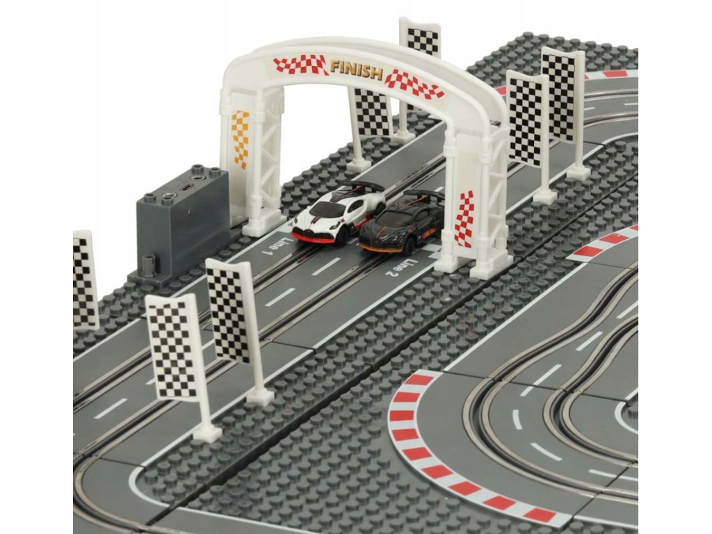 W zestawie znajduje się kompletny zestaw, dzięki czemu dzieci mogą zacząć zabawę od razu po wyjęciu z pudełka. Tor składa się z 15 klocków, które łatwo do siebie pasują.