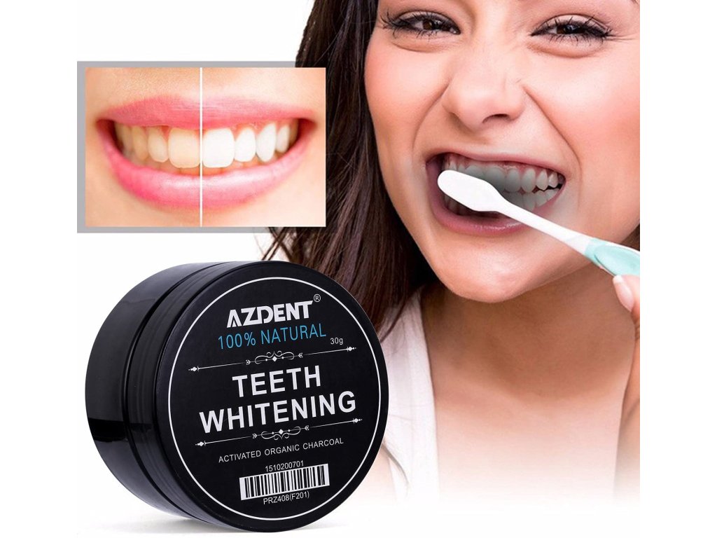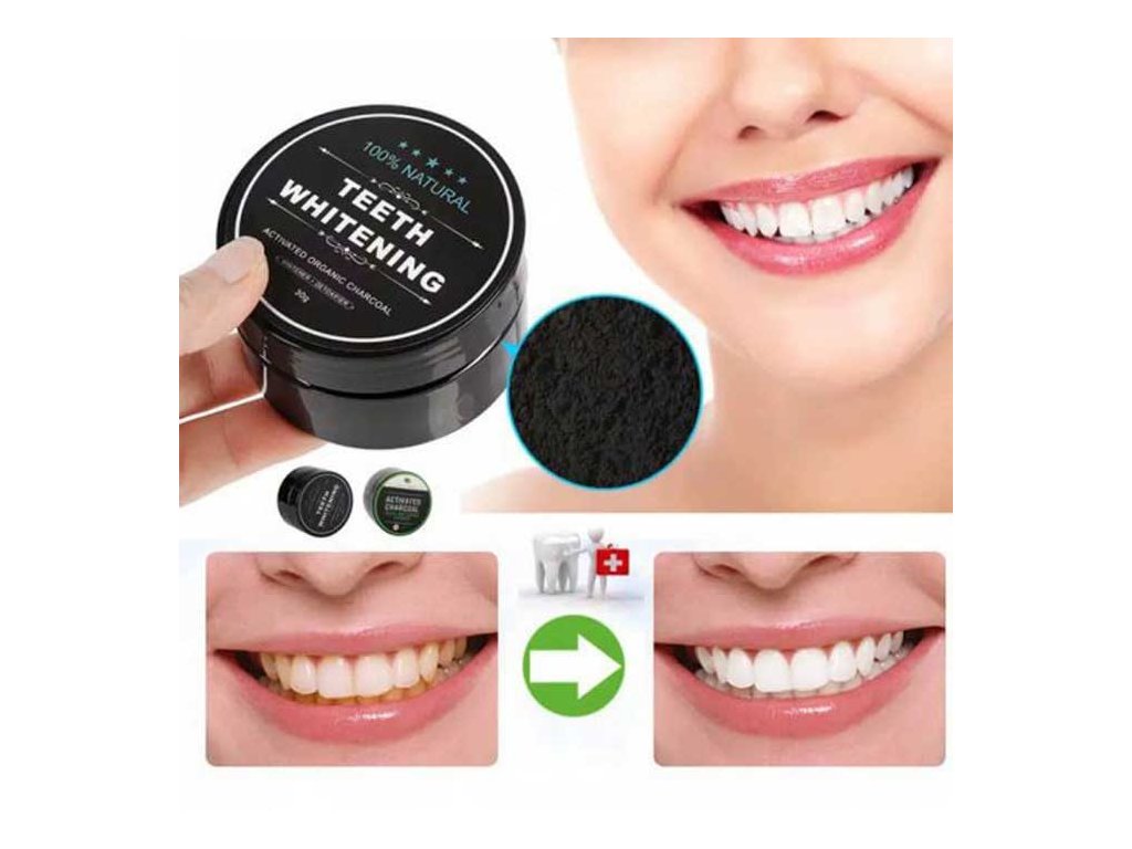 Proszek z węglem aktywnym skutecznie usuwa przebarwienia z papierosów, herbaty, wina i kawy, działa również na ciemne plamy i płytkę nazębną, przywraca pewny uśmiech z pięknymi białymi zębami. Węgiel nie tylko wybiela powierzchnię zębów, ale także wzmacnia szkliwo. Dla zdrowego i pięknego uśmiechu.