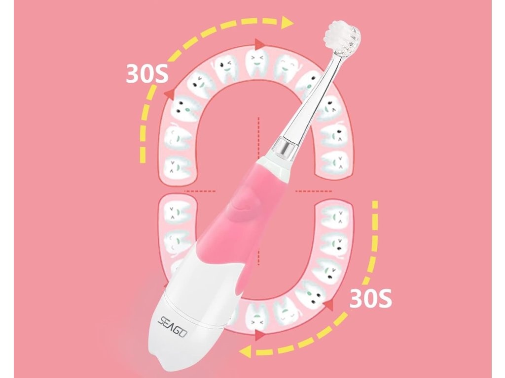 Ważnym elementem szczoteczki jest inteligentny timer, który zapewnia równomierne czyszczenie. Co 30 sekund szczoteczka delikatnie wibruje, sygnalizując dziecku konieczność przejścia do kolejnej części jamy ustnej. Po dwóch minutach automatycznie się wyłącza, motywując dziecko do utrzymania prawidłowego czasu szczotkowania.